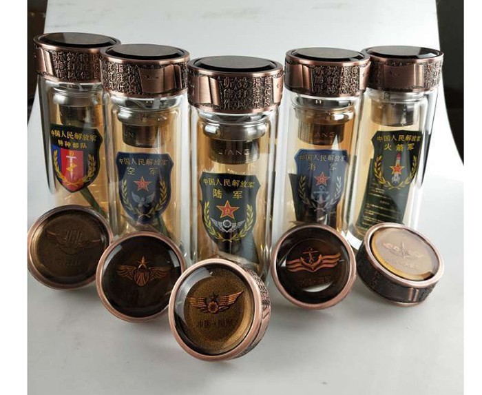 蒙砂酒瓶是在制品玻璃上,粘附一定大小面積的玻璃色釉粉,玻璃瓶廠經(jīng)過(guò)580~600℃的高溫烘烤,使玻璃色釉涂層凝結(jié)在玻璃外表,并顯現(xiàn)出具有與玻璃主體不同顏色的一種裝飾辦法。粘附玻璃色釉粉,可用排筆涂刷,亦可用膠輥滾涂。經(jīng)過(guò)絲印加工,能夠得到蒙砂面的樓空?qǐng)D案。 其辦法是:在玻璃制品外表上,絲印一層由阻熔劑構(gòu)成的圖案紋樣。